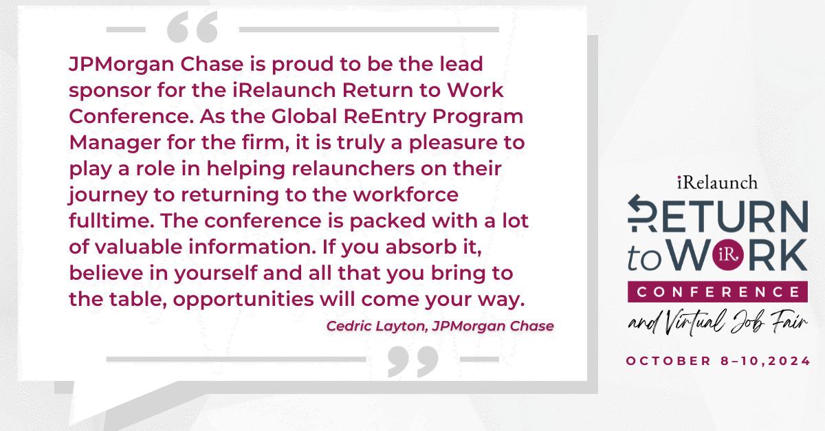 The next iRelaunch Return to Work Conference will run May 6-8, 2025 (virtual).