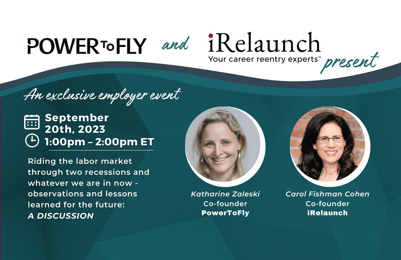 Carol Fishman Cohen co-founded iRelaunch in 2007, and Katharine Zaleski was a hiring manager at the Washington Post and Huffington Post in 2008 - 2009 before co-founding PowerToFly in 2014. Katharine and Carol discuss their experiences revolving around a changing labor market during this unusual 16 year stretch of time which included two recessions, a Pandemic and the recession/non-recession (who knows?) period we are in now.